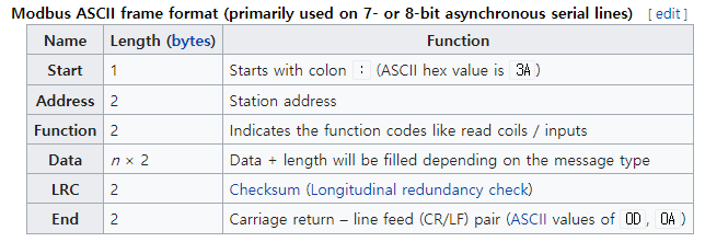ASCII방식은 시작문자는 콜론(:)으로하고, 끝문자는 CR/LF로 끝납니다.