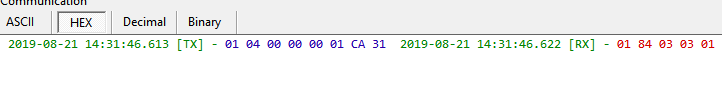 CRC를 잘못보내게 되면 응답으로 function 부분에 0x80이 더 더해서 오게 됩니다.