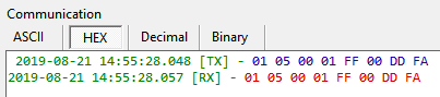 Coil 출력이 성공적으로 되었다면 응답도 똑같은 Packet으로 전달됩니다.