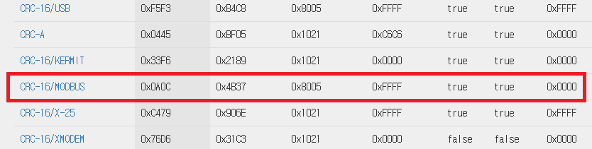 참고로 Poly는 0x8005, init value는 0xFFFF입니다.