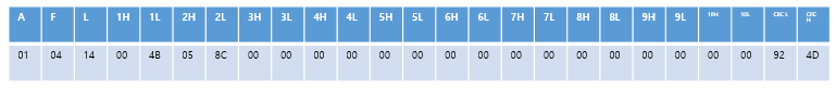 RX 패킷도 마찬가지로 주소, function이 나오고 길이정보가 나옵니다. 그뒤에는 2byte씩 레지스터 값이 나옵니다.