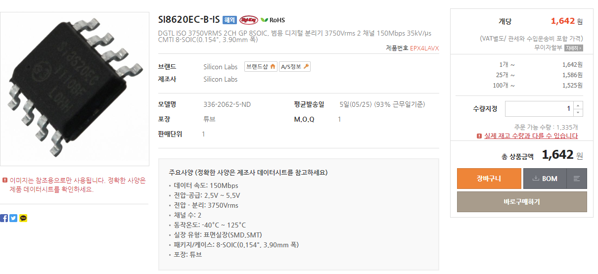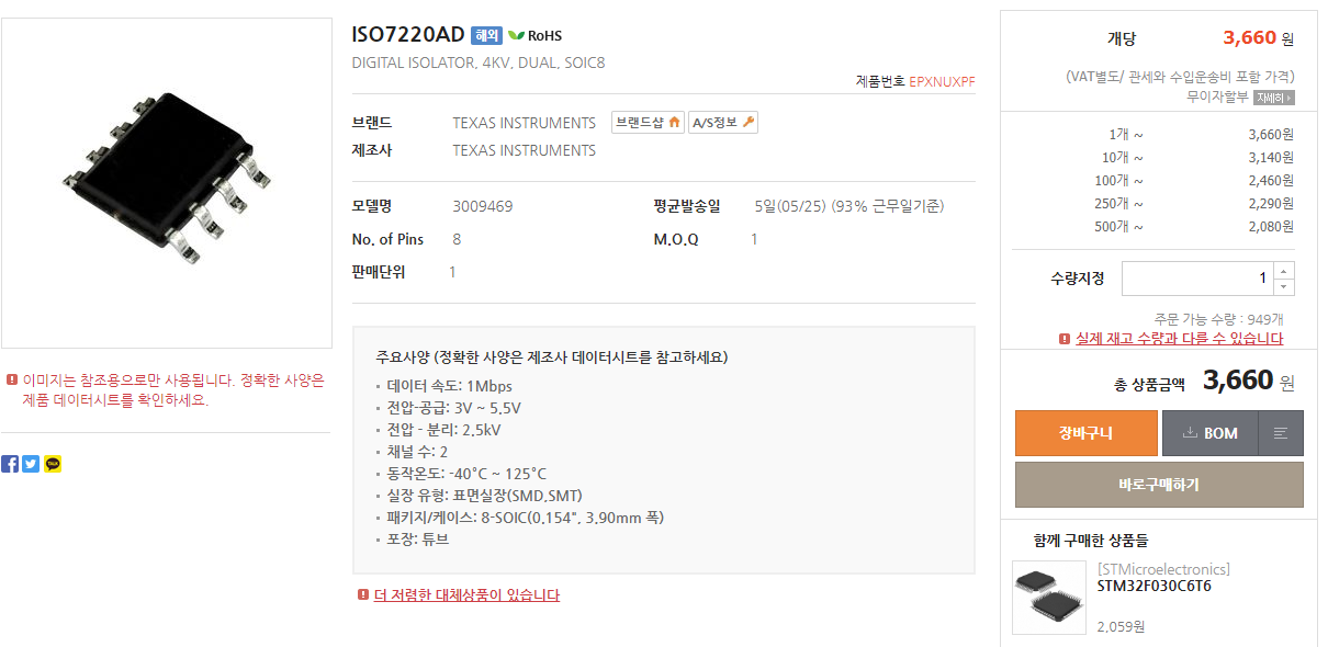 ISO7220A 시리즈의 경우 엘레파츠기준 3천원 후반대의 가격으로 비싼편입니다.