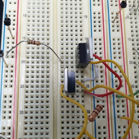 빵판에 타이머 회로를 구성하였습니다.