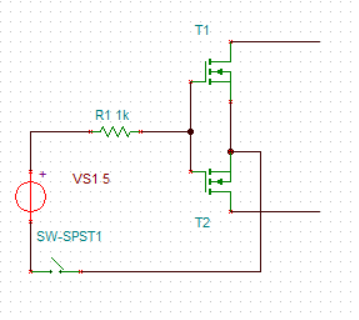 위와 같이 FET의 Source끼리 연결하고, 게이트와 소스단에 전압을 인가해주면 T1과 T2의 드레인이 연결됩니다.