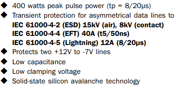 하지만 RS-485용으로는 Semtech의 SM712가 많이 사용되는것 같습니다.