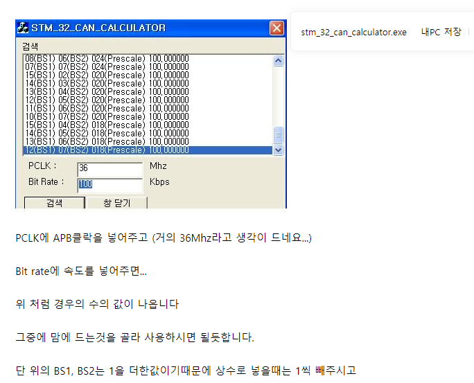 네이버카페 EMBEDDED CRAZY BOYS에 천동이님이 올리신 STM32 CAN Bitrate 계산기를 사용하시면 STM전용 Baudrate를 계산하실 수 있습니다.