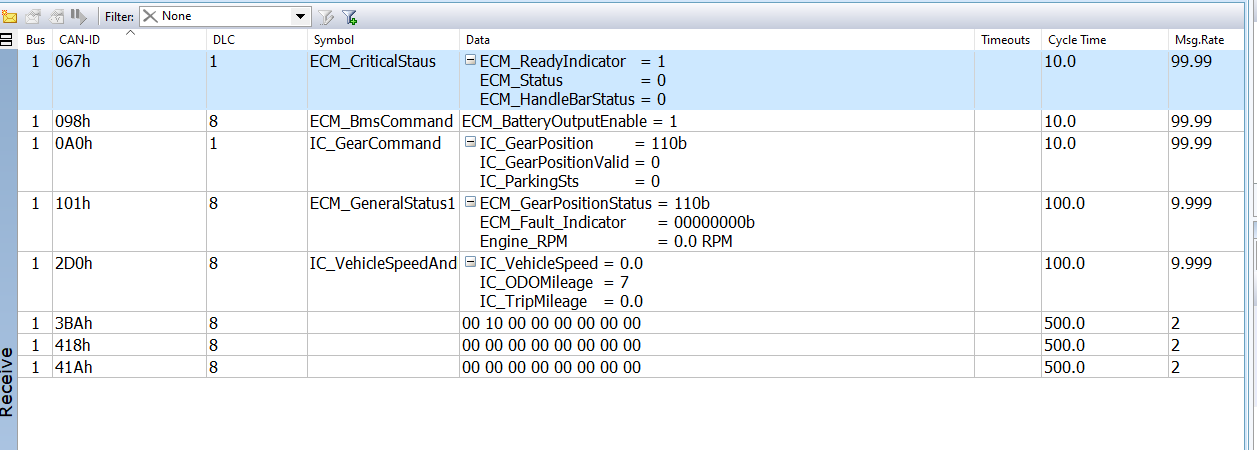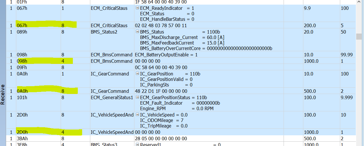 아래는 실제 통신상에서 PCAN을 이용하여 로그를 찍은 것입니다.