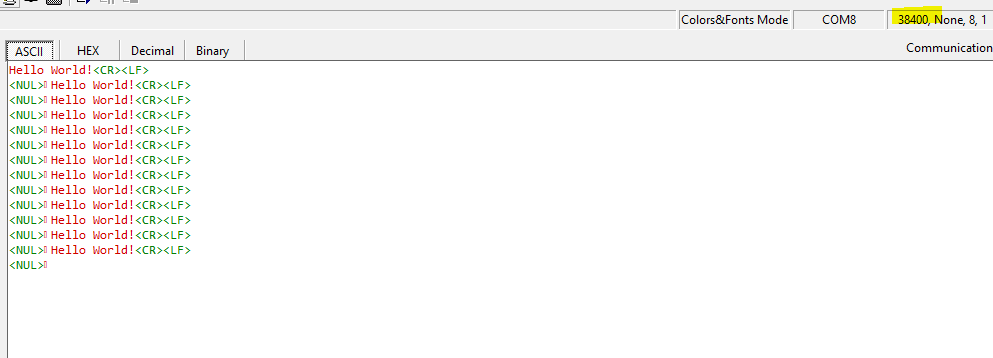 참고로 default baudrate는 38400입니다.