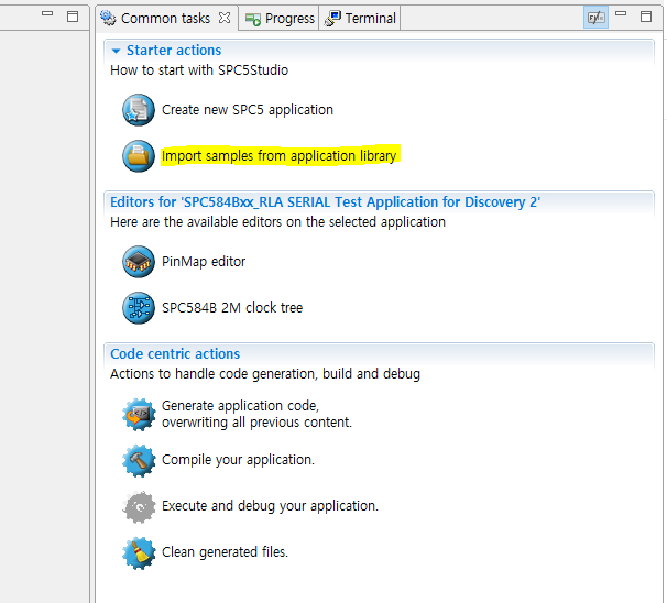 간단한 테스트를 위해 오른쪽 TAB에 있는 Import samples from application library를 선택합니다.