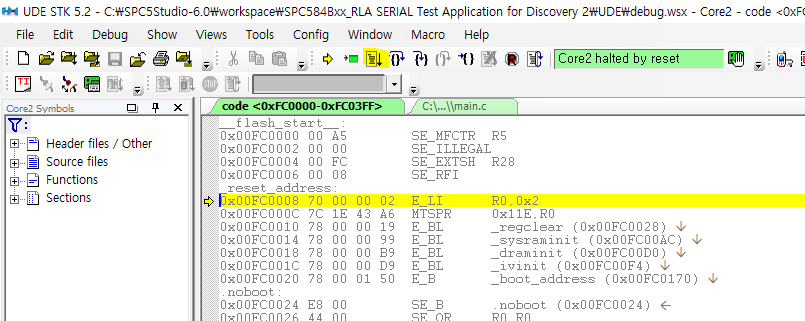 코드변경은 SPC5 STUDIO로 이동후 main.c에서 변경합니다.