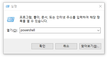 윈도우에서 실행(win+r)에서 'powershell'을 실행하세요.