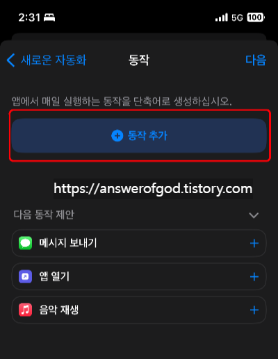 단축어를 실행하시면 하단부에 '자동화'라는 탭이 있습니다.