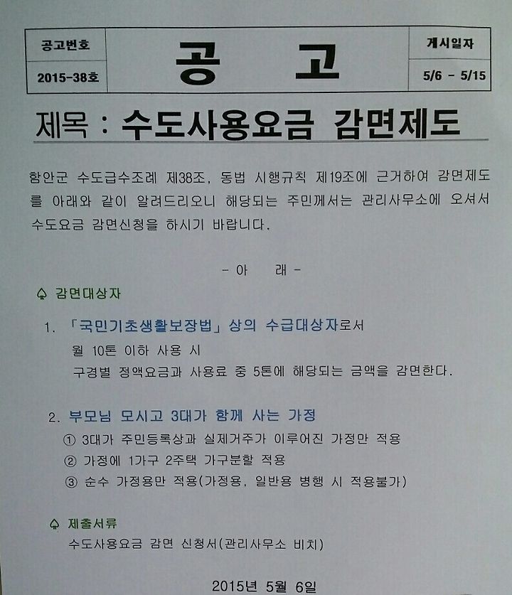 시골이라그런지 수도요금 할인도 해주는군요^^
