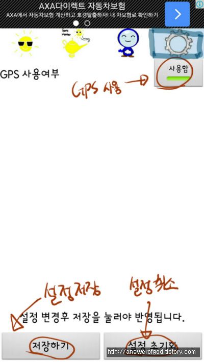 마지막으로 설정탭을 누르게 되면 GPS 사용여부를 설정할 수 있습니다.