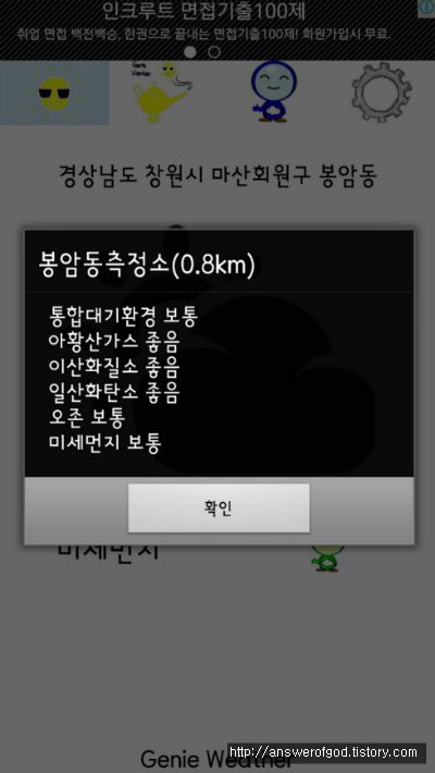 누르게 되면 간략한 대기정보를 보실 수 있습니다.