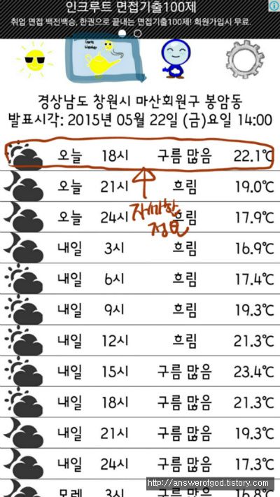 날씨 리스트중 하나를 클릭해보면 자세한 날씨 정보가 나타납니다.