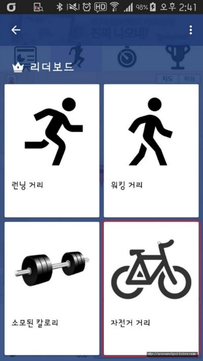운동선택하실때 자전거가 추가된 걸 보실 수 있습니다.