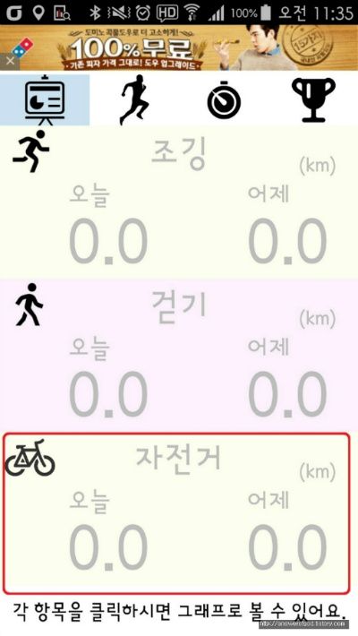 앱을 처음 실행하면 서머리에 칼로리 대신 자전거가 추가되었습니다.