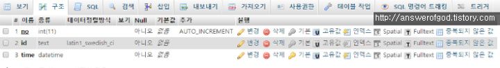 위 구조는 USER table의 구조입니다.