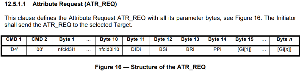 NFC ISO18092 Active P2P - ATR (Attribute)